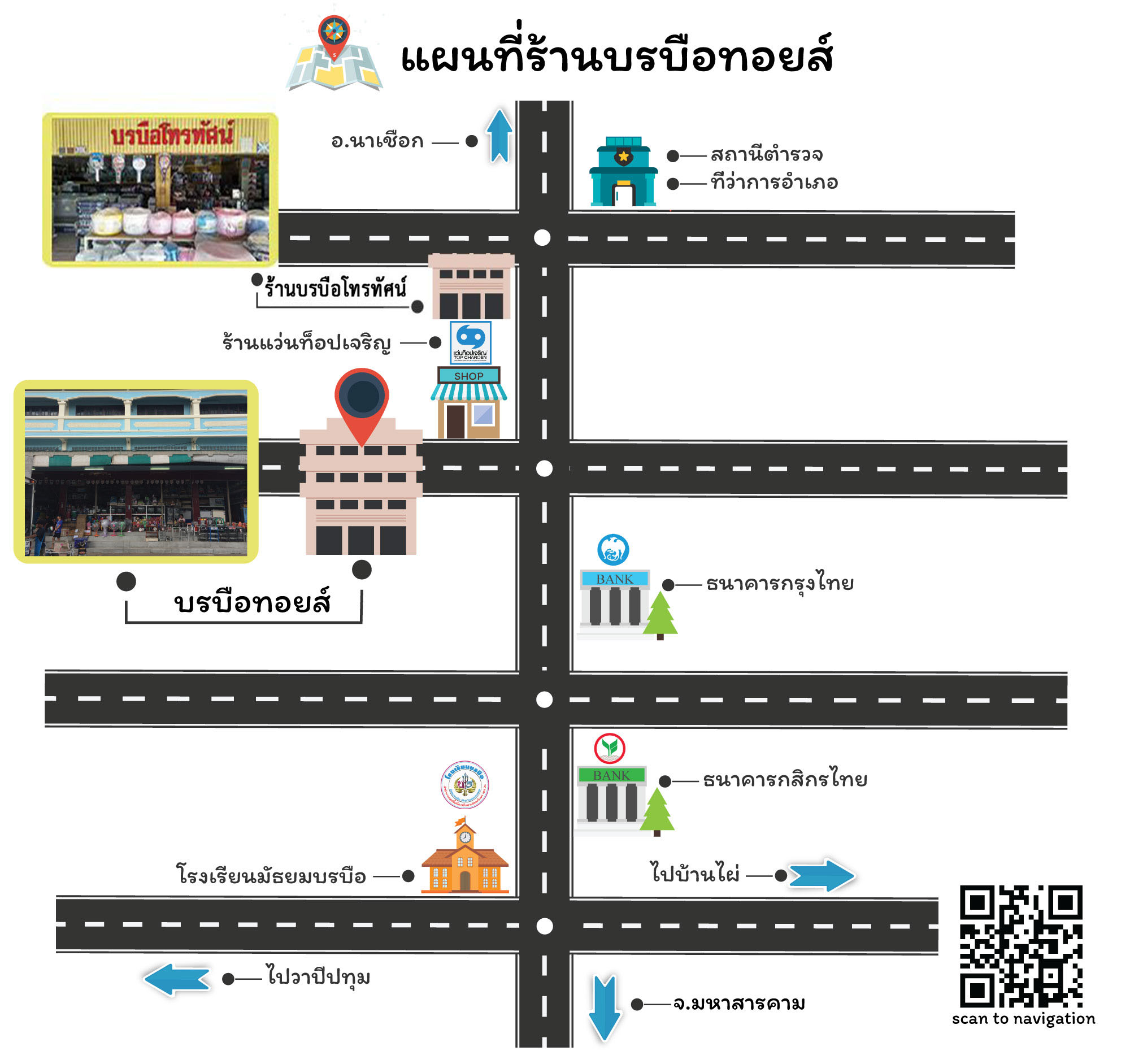 เลขที่ 232-235 ถนนแจ้งสนิท อ.บรบือ จ.มหาสารคาม (ตรงข้ามร้านขายจักรยาน สี่แยกสถานีตำรวจ, ที่ว่่าการอำเภอ) ถนนเส้นหลักบรบือ - นาเชือก