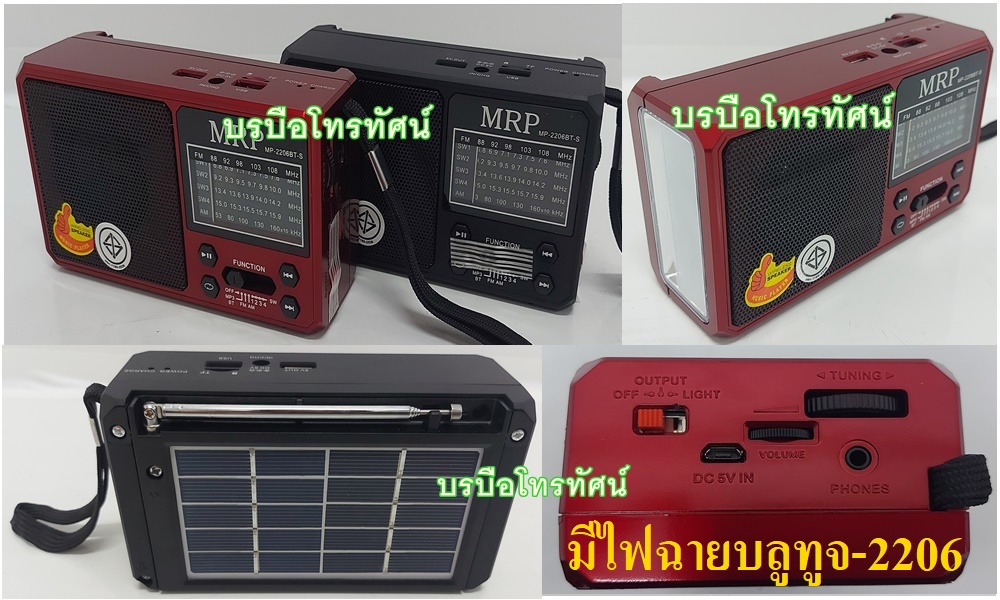 💫2.ชาร์จโซล่าเซลล์ มีไฟฉาย MRP MP-2206BT